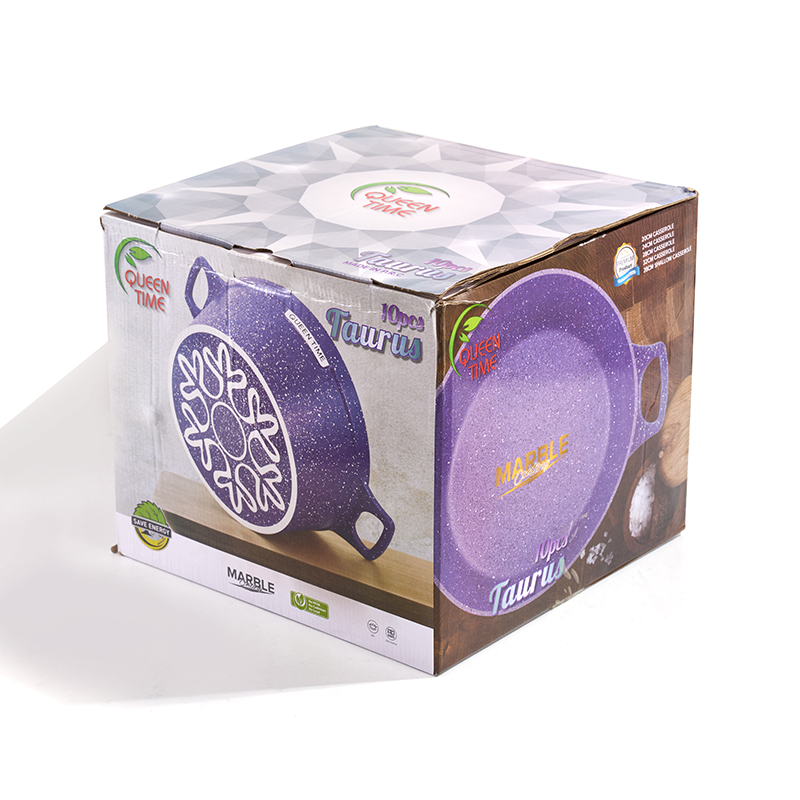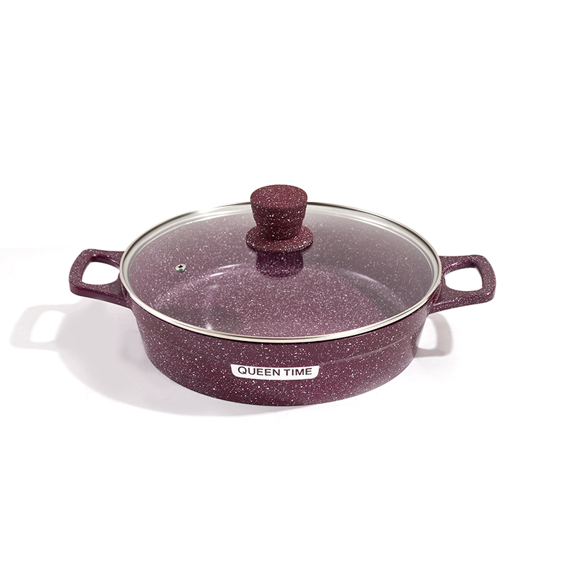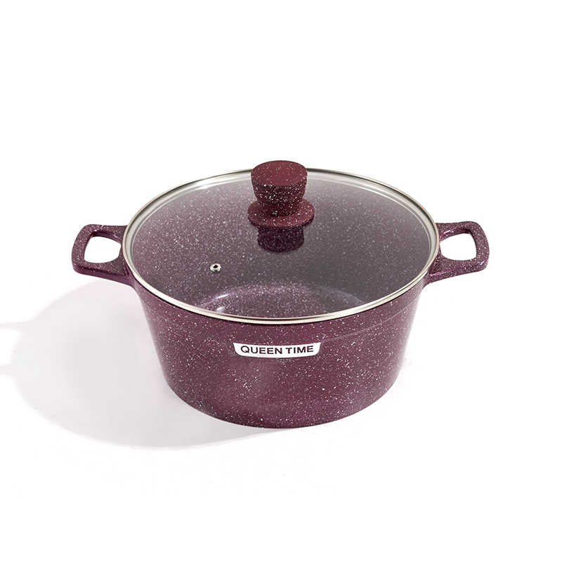 Granite-textured body with clear glass lids, seamless die-casting, matching heat-resistant handles, multi-sizes for stewing and braising, compatible with all stovetops, easy to clean.