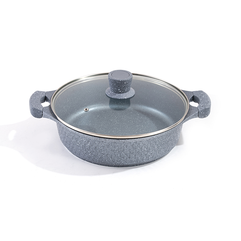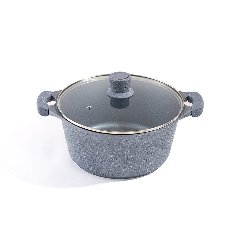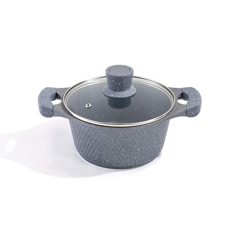 Diamond-embossed granite-textured body, matching knobs and dual handles, multi-size set for stewing and braising, non-stick and easy to clean, compatible with all stovetops, modern and durable.