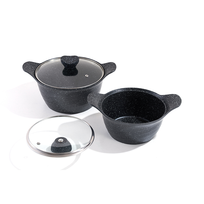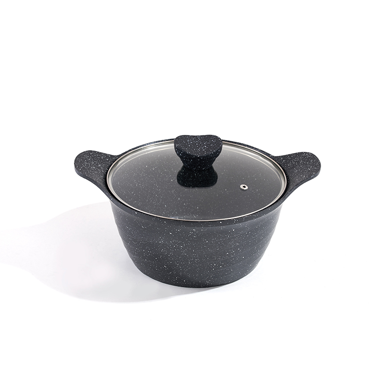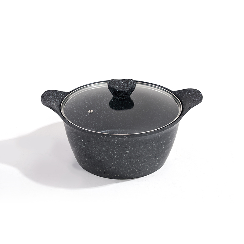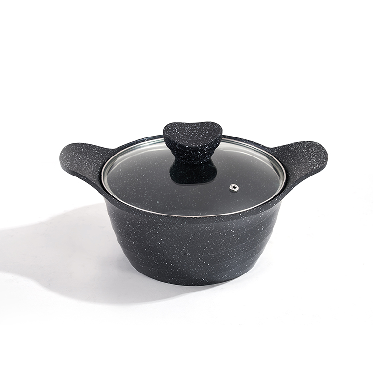 Granite-textured body with one-piece construction, multi-sizes for frying and stewing, non-stick and easy to clean, compatible with all stovetops, minimalist and durable.