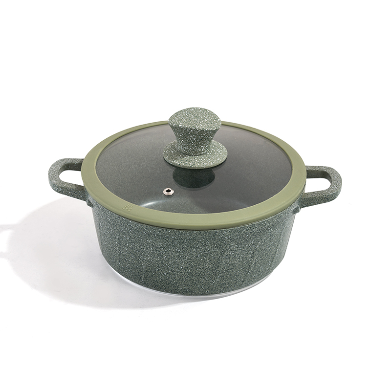 Granite-textured body, matching lids and knobs, multi-size set for stewing and braising, non-stick and easy to clean, solid texture, compatible with all stovetops.