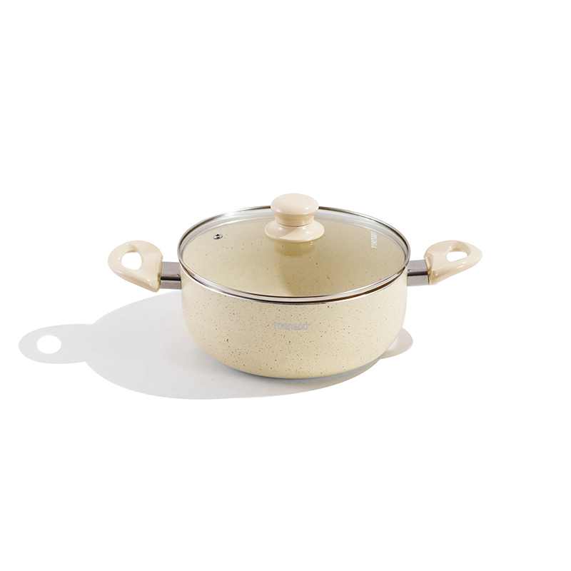 Granite-speckled textured body with matching handles, multi-size set (stockpots, frypans, saucepan), food-grade non-stick interior, easy to clean, durable, compatible with all stovetops, ideal for daily home cooking.