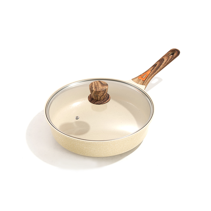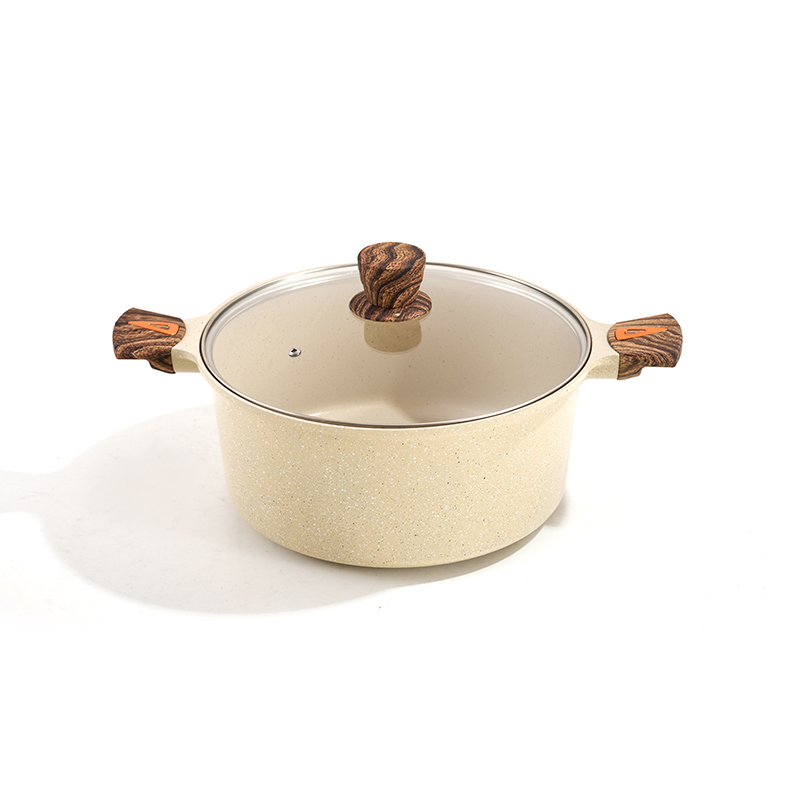 Wood-grain handles with granite non-stick interior, multi-size set (stockpots, frypan) for frying, stir-frying, boiling & stewing, heat-resistant and comfortable grip, easy to clean, durable, compatible with all stovetops, creating a warm and healing kitchen atmosphere.