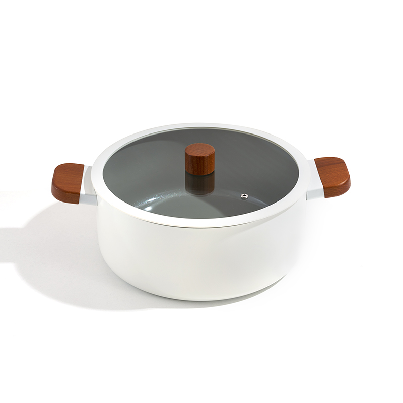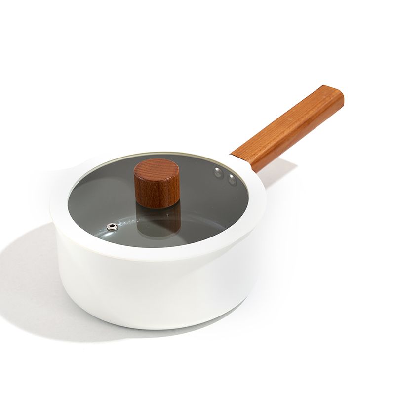 Compared with stainless steel cookware sets, white aluminum sets are lighter and more visually design-focused. Compared with darker non-stick cookware, they feel more decorative and “clean-looking,” while still handling basic everyday cooking tasks like boiling, frying, and light sautéing without much effort.