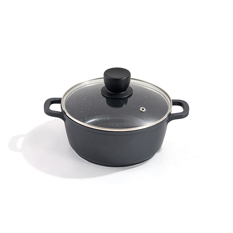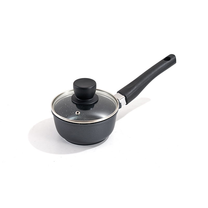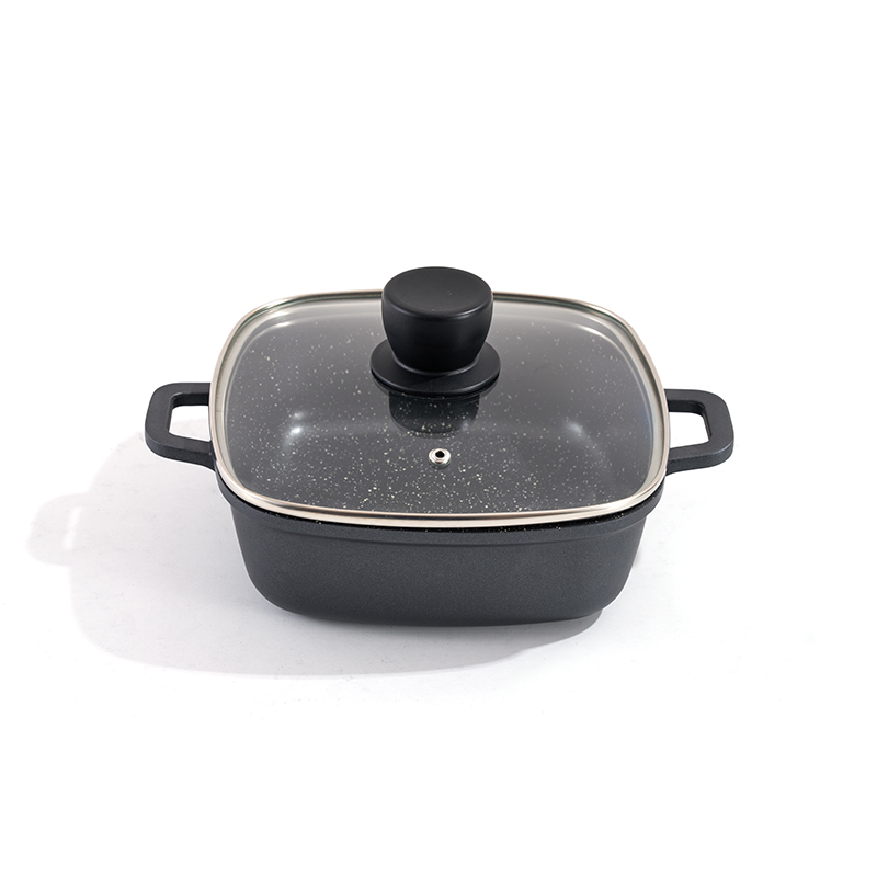Multi-shape cookware set (round, square, saucepan), black granite-speckled texture, food-grade non-stick interior, easy to clean, durable, compatible with all stovetops, versatile for diverse cooking scenarios.
